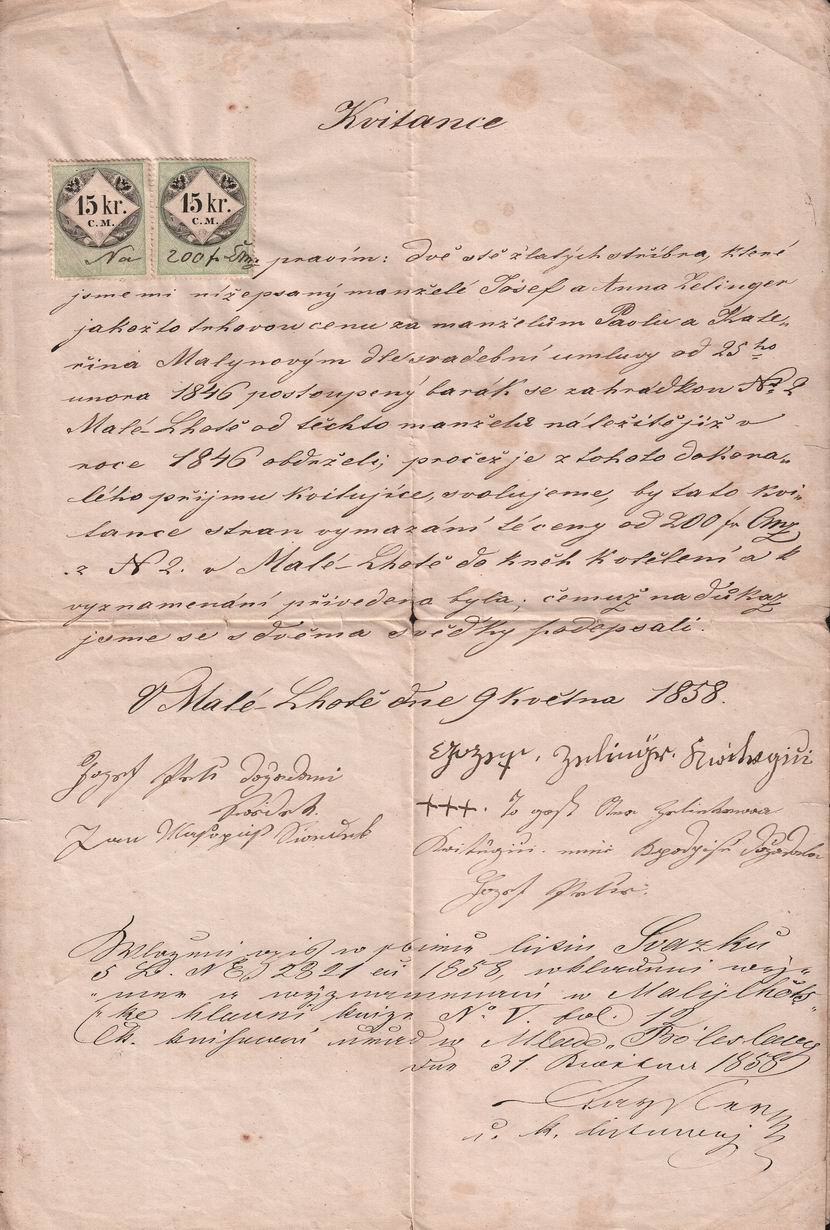 Zelinger Josef_Kvitance_Malá Lhota_10727